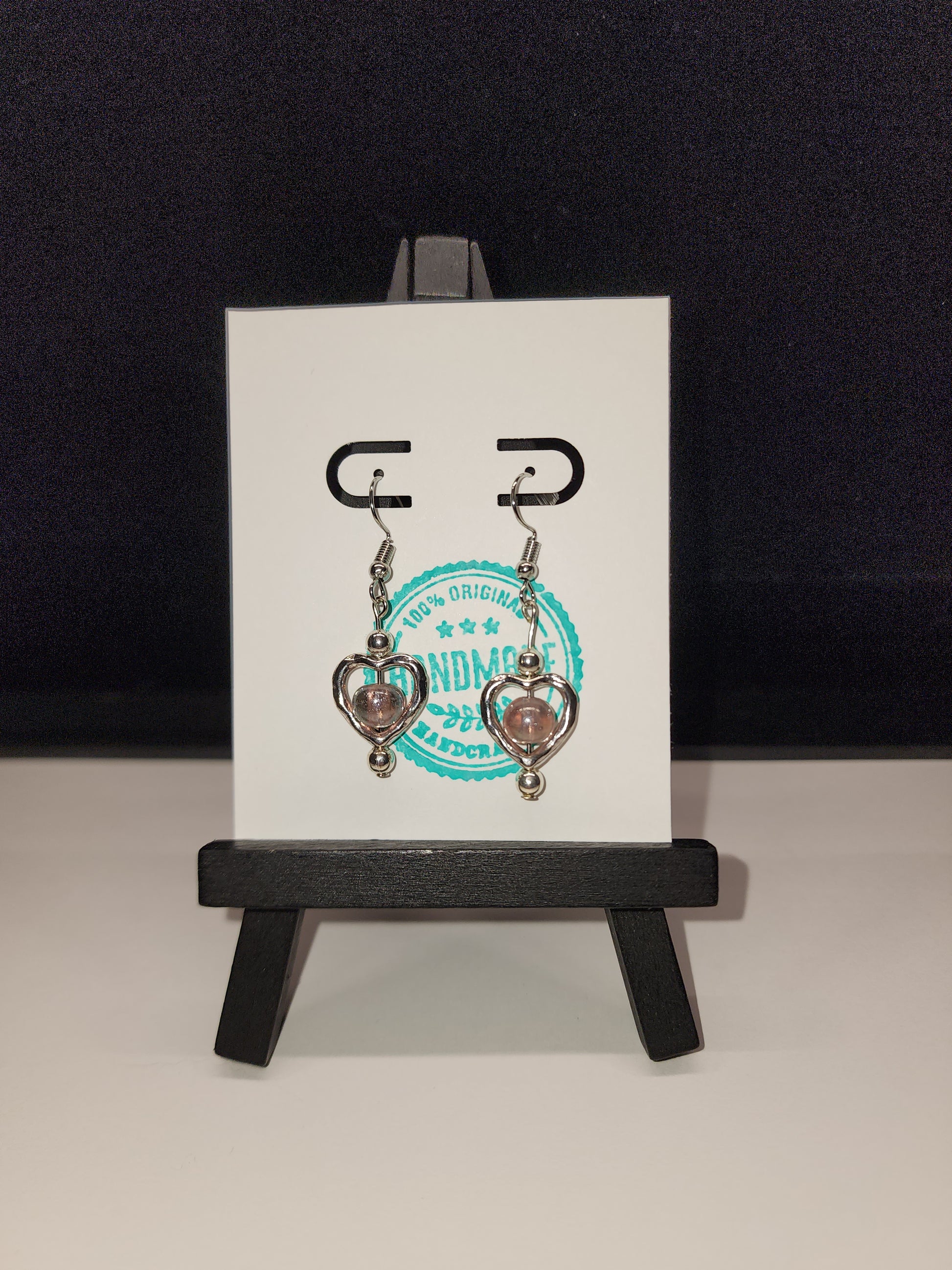 Silver tone heart with pink glass beads, nickel free findings